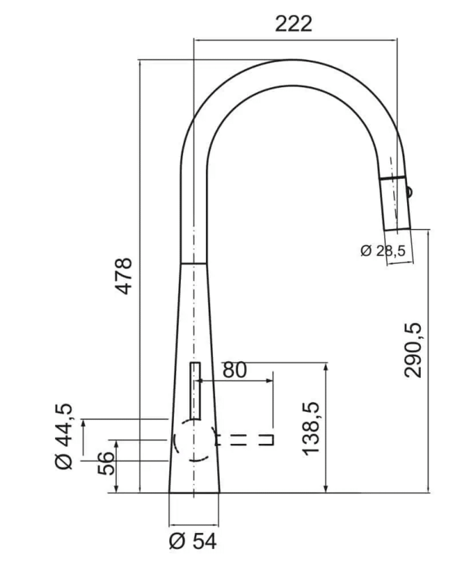 Mezclador monomando con caño extraíble de doble chorro.